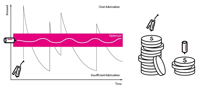 Die automatische Schmierung mit simalube bietet nicht nur ökologische Vorteile, sondern auch betriebswirtschaftliche. Die längere Lebensdauer von Produktionsanlagen durch kontinuierliche und präzise Schmierung minimiert nicht nur den Schmierstoffverbrauch, sondern reduziert auch erheblich Stillstandzeiten aufgrund von Wartungsunterbrechungen.